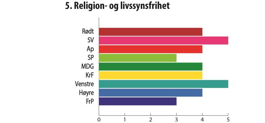 Slik skårer partiprogrammene på de fem hovedtemaene: